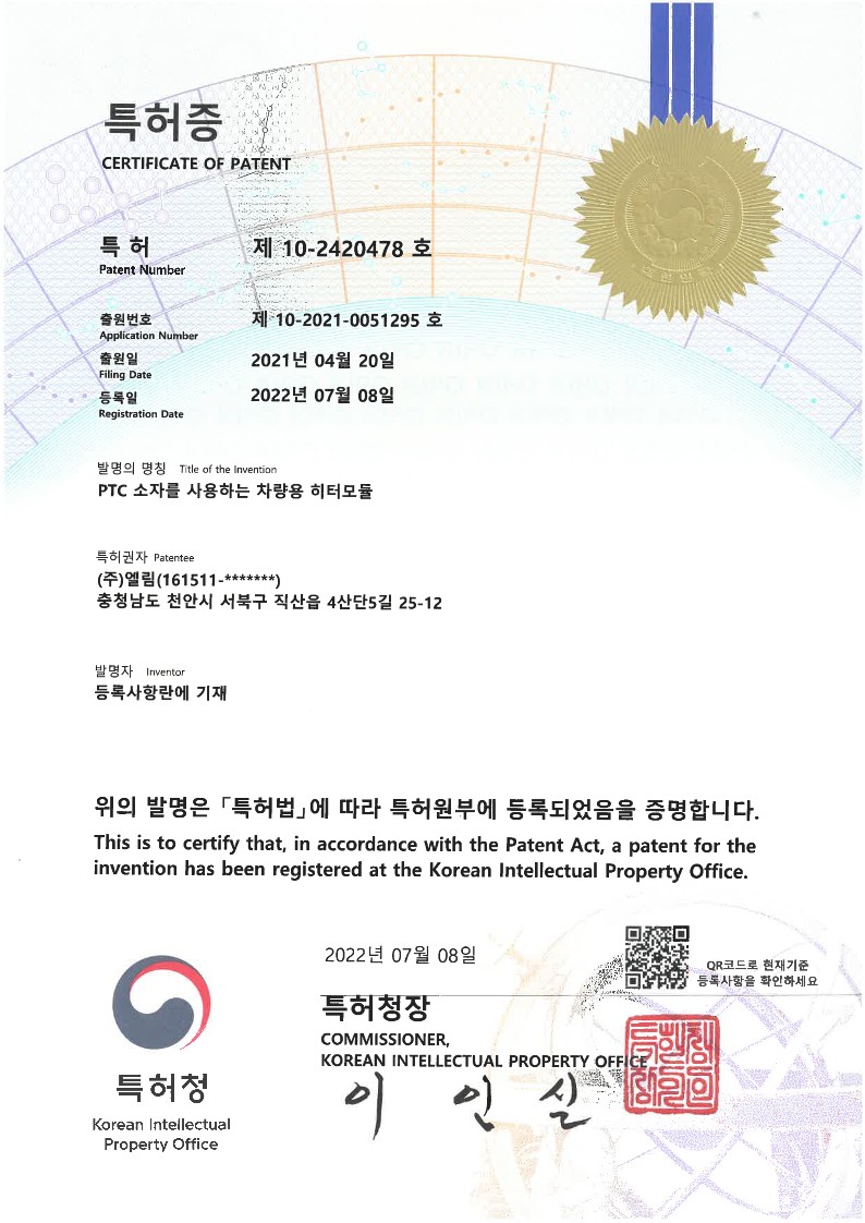 특허 제10-2420478호 페이지 정보 작성자 (주)엘림 작성일 24-03-29 17:20 조회 2,232회 댓글 0건 본문 이전글특허 제 10-2259559호 다음글ISO14001 목록
